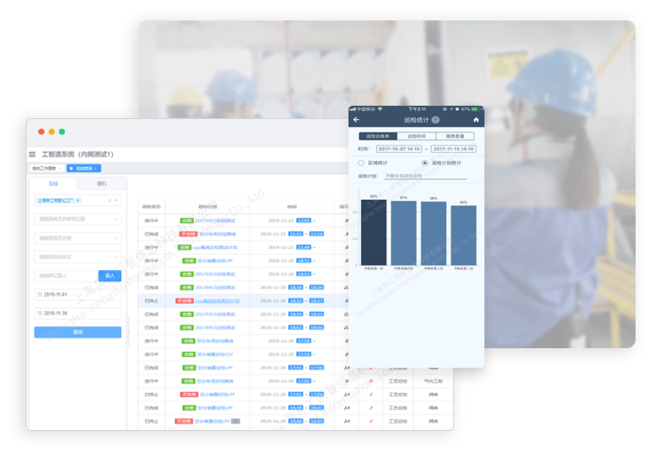 便攜式移動端巡檢,保障設(shè)備運(yùn)行正常,及時(shí)上報(bào)事故隱患。